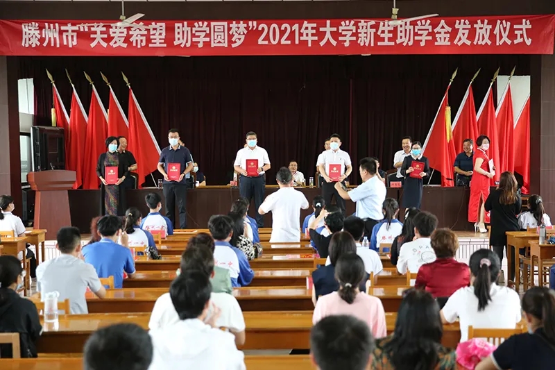 8月26日,滕州市“关爱希望、助学圆梦”2021年大学新生助学金发放仪式在市教体局举行。集团总经理侯钦军代表集团公司为困难学生捐助了助学金,并在活动中发言。“关爱希望、助学圆梦”活动旨在全社会倡导无私奉献、乐于助人的道德风尚,营造团结友爱、互助共进的良好氛围,共同关注家庭困难大学生,帮助他们顺利走入大学校门