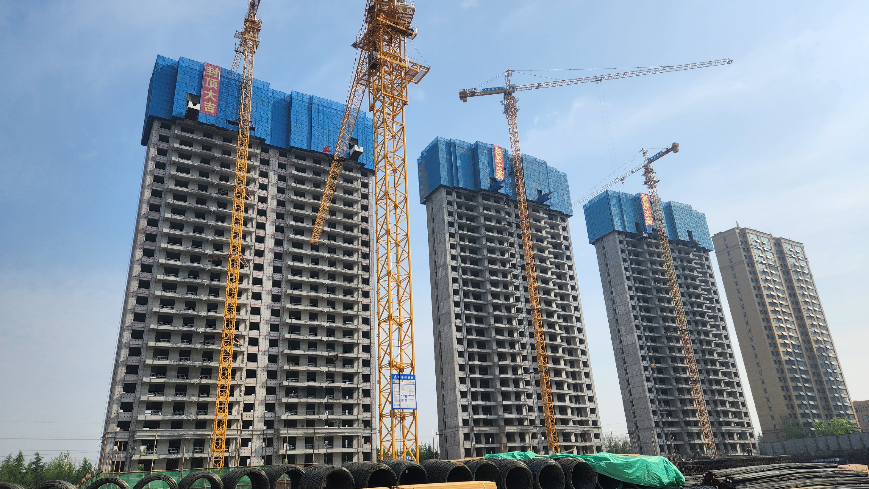 槐序时节,风华正浓。滕投悦府二期项目迎来了项目的首个重要阶段性成果,15.16.19.14号楼依次完成了主体封顶施工。自2023年夏季项目整体进入土建施工阶段以来,工程管理三部携同总包单位、监理单位、跟踪审计等悦府二期全体参见单位在集团公司的统筹规划下,在其他兄弟部门的帮助配合下克服了整体市场环境及房地产政策调整带